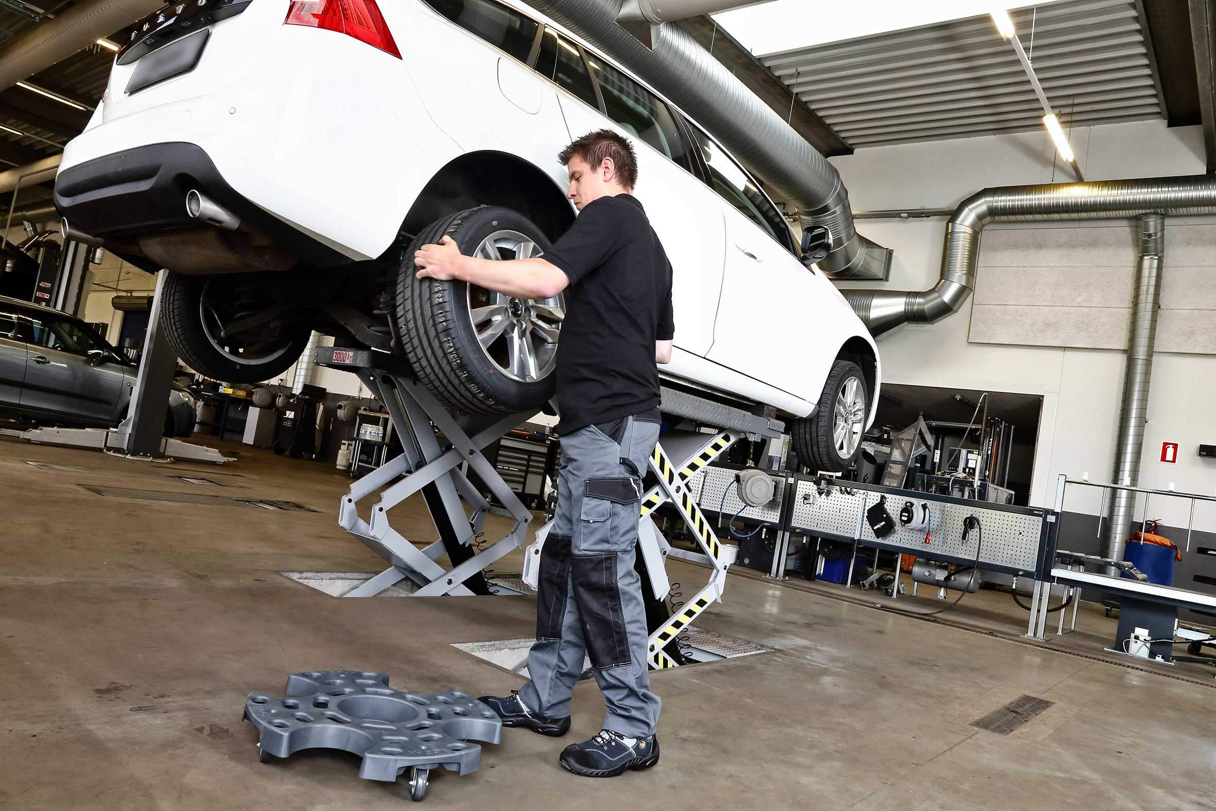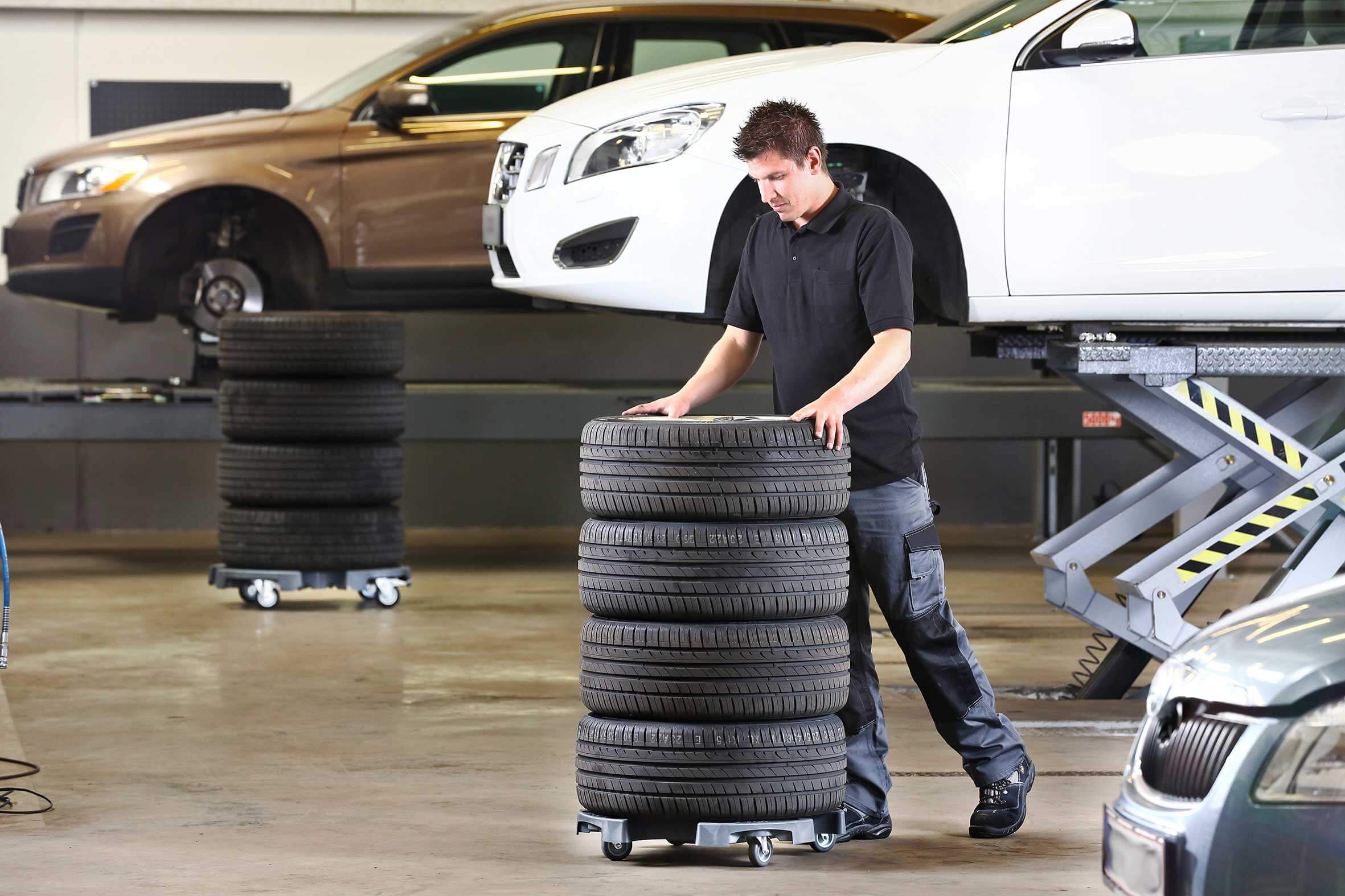 - Transport von Rädern von der Hebebühne zur Reifenmontagemaschine oder zum Reifenregal